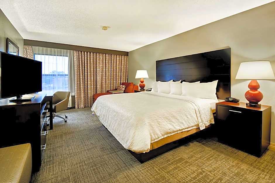 Work area, free WiFi, tea/coffeemaker, easy chair with ottoman Have a relaxing stay in this king room that features our clean and fresh Hampton bed®. Unwind in the easy chair with ottoman while watching TV and enjoy a hot drink from your in-room tea/coffeemaker. The room includes a spacious work desk and free WiFi to let you catch up on work while traveling. In the bathroom you'll enjoy fluffy towels, a WaterPik® showerhead and curved shower rod for added space and light.